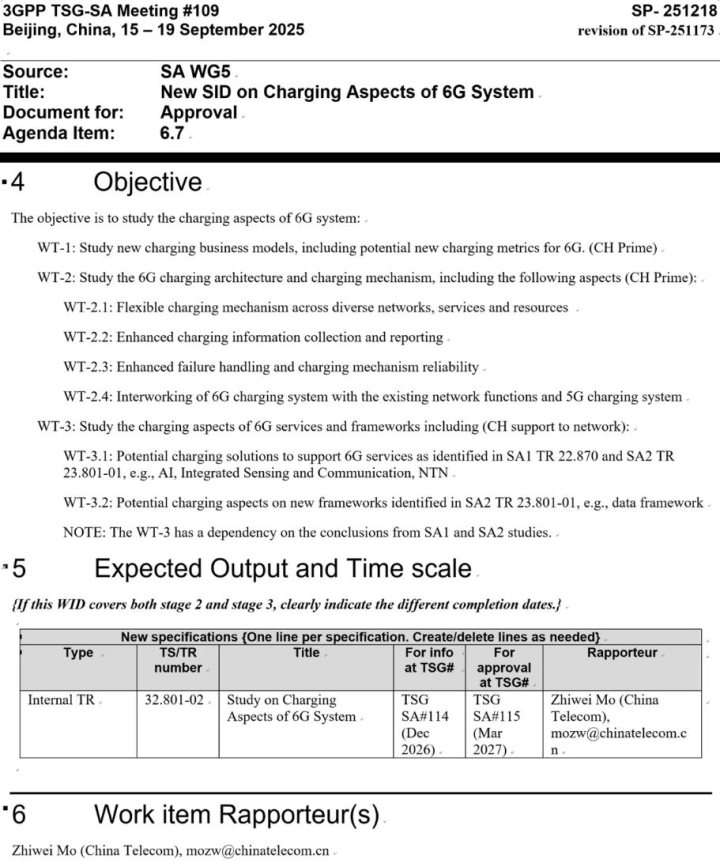 6G系统计费研究立项